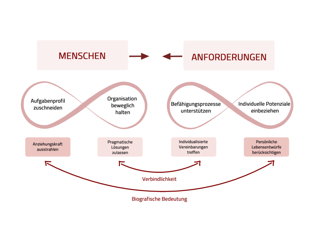 - Wie flexibel ist die Organisation in Bezug auf Stellenzuschnitte, Deputatsumfang und Dienstplangestaltung?